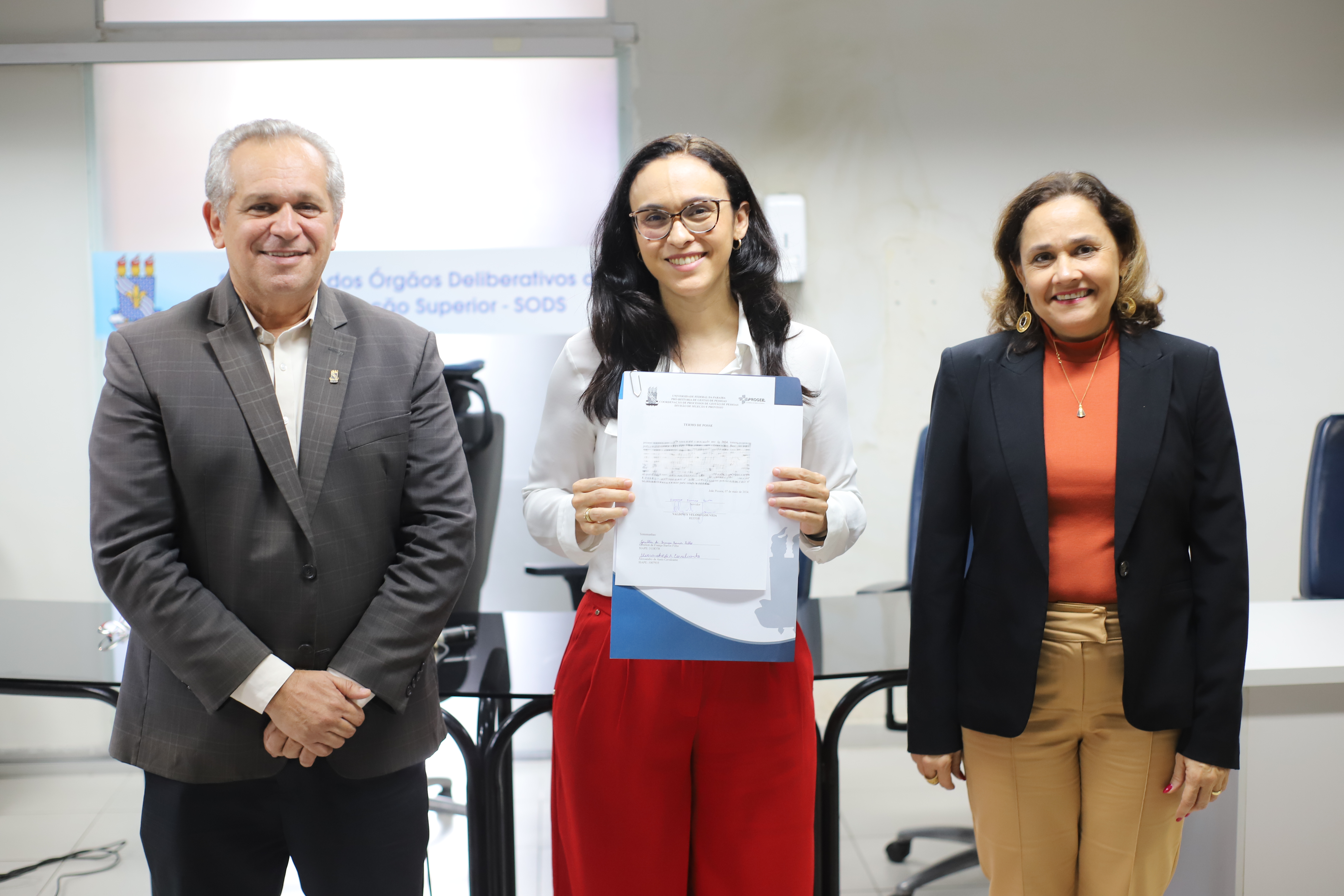 A solenidade ocorreu na sala de reuniões da Secretaria dos Órgãos Deliberativos da Administração Superior (SODS) e contou com a presença da Pró-reitora de Gestão de Pessoas (Progep), Profa. Rita de Cássia Pereira, e da Diretora da Divisão de Seleção e Provisão (DSP) do órgão, Lara Nóbrega. Amigos e familiares também compareceram às boas-vindas realizadas pela UFPB e, entre eles, a senhora Eulália Leurquin, uma das mais entusiasmadas, por causa da conquista do filho.